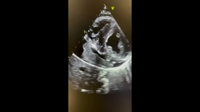 Ingresa en la unidad de cuidados intensivos pediátrica, donde se completa el estudio con ecocardiografía, que muestra un derrame pericárdico grave (fig. 1E, estrella), con signos incipientes de compromiso hemodinámico, y una masa hiperecogénica oscilante, sugestiva de hematoma pericárdico (fig. 1F y vídeo S1).